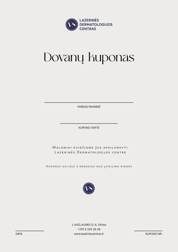 Padovanokite brangiam žmogui galimybę gauti kokybiškas ir profesionalias sveikatos priežiūros paslaugas. Įsigyti dovanų kuponą galite: www.lazeriniscentras.lt